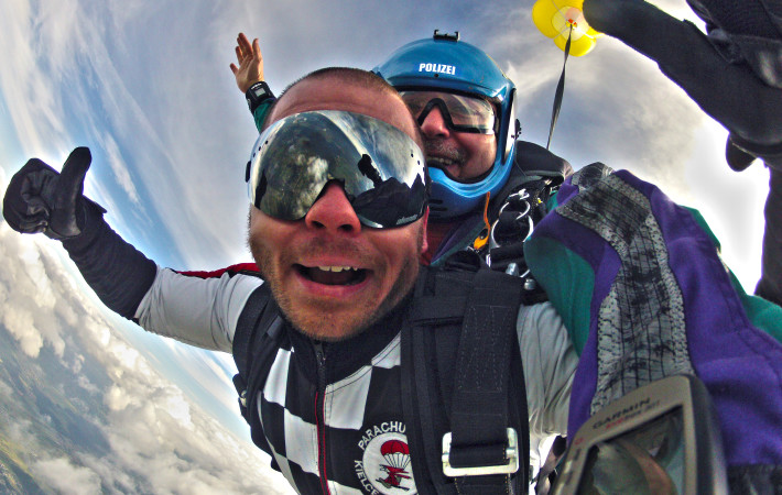 16 czerwca 2014 po wieloletniej nieobecności skoki spadochronowe w tandemie znów zagościły na kieleckim niebie. Skaczemy z Cessny 185. Cena skoku to 750 pln a opcjonalne filmowanie i zdjęcia ze skoku 100 pln (film z kamery naręcznej) lub 250 pln (kamerzysta zewnętrzny). Zapraszamy 🙂